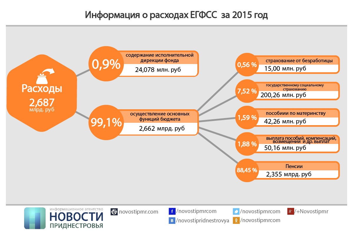 Тирасполь, 15 марта. /ИА «Новости Приднестровья»/. Как отметили сегодня на заседании Правительства, по итогам прошлого года доходы Единого государственного фонда социального страхования оказались на уровне 2 млрд 736 млн рублей, что на 374 млн (13%) меньше показателей 2014 года.
