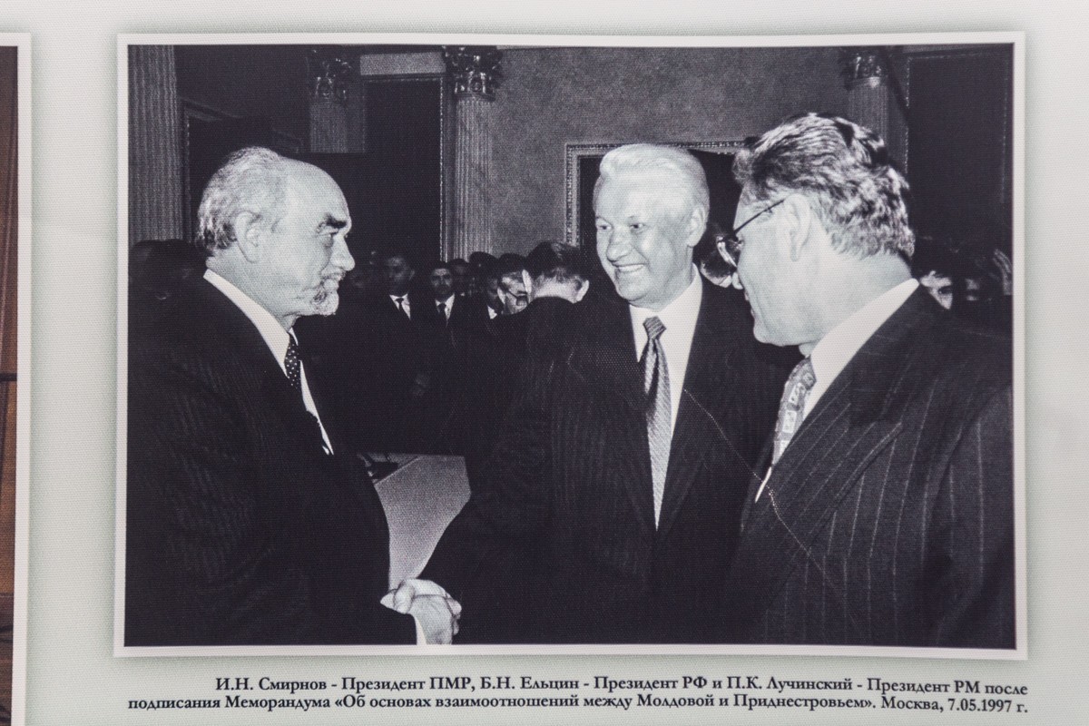 Как рассказал автор выставки Владимир Иванов, с Игорем Николаевичем он знаком уже более тридцати лет. За это время удалось запечатлеть немало важных событий. Особенный кадр сделан в мае 1997 года в момент подписания Меморандума об основах нормализации отношений между Молдовой и Приднестровьем.