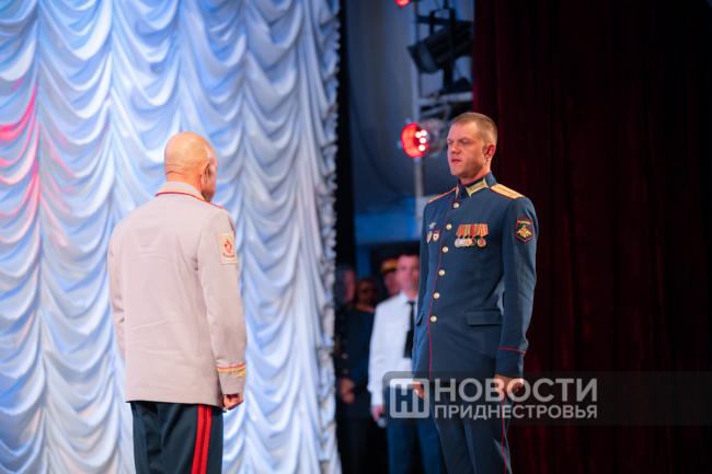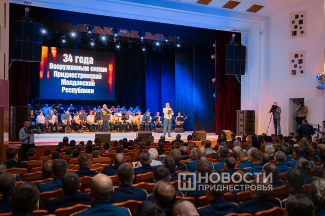 По случаю праздника отличившимся военнослужащим вручили госнаграды и присвоили очередные воинские звания. Торжественное мероприятие продолжил праздничный концерт, подготовленный оркестром Главного штаба Вооружённых сил ПМР.