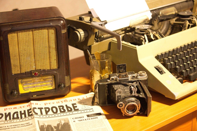 В помещении, выделенном союзу ГУ «Приднестровская газета», определили место, где расположатся материалы так называемого исторического хранилища. И вот уже появились первые экспонаты: фотоаппараты советского времени «Смена», ФЭД-4, «Москва», пишущие машинки «Эрика», «Ятрань», диктофоны, с которыми в прошлом работали корреспонденты городских и районных газет.