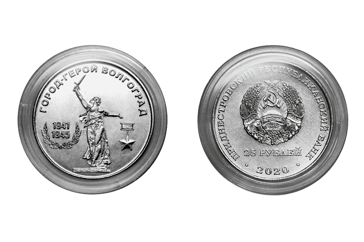 Тирасполь, 24 января. /Новости Приднестровья/. Приднестровский республиканский банк с сегодняшнего дня ввел в обращение памятные монеты «Город-герой Волгоград». 25-рублевые монеты пополнят серию «Города-герои в годы Великой Отечественной войны 1941-1945 годов».