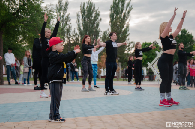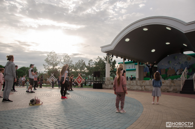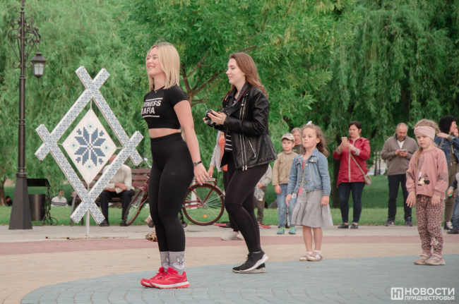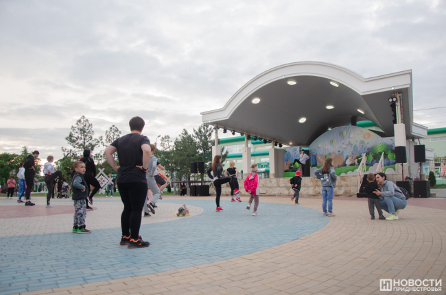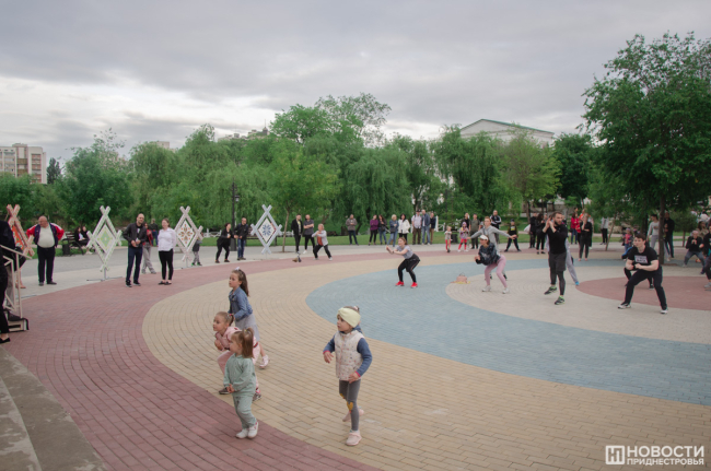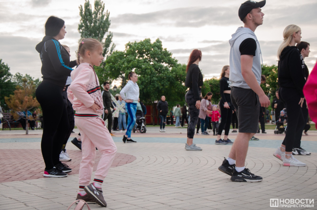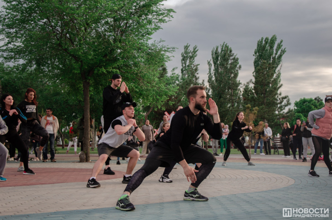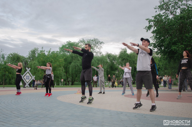 Вечером в Екатерининском парке прошел большой спортивный праздник. Славная советская традиция заниматься коллективно, на свежем воздухе и под музыку уже несколько лет воплощается командой тренеров «Фитнес-Мафия». В современном варианте это выглядит так: сначала разминка, потом хип-хоп танцы, комплекс для всего тела и растяжка. На тренировке присутствовало много людей. Бодрые голоса ведущих, их энергия и позитив вдохновляли тираспольчан. Среди них были и дети, которые с удовольствием повторяли все движения за тренером. Организаторы планируют радовать жителей и гостей города и летом.