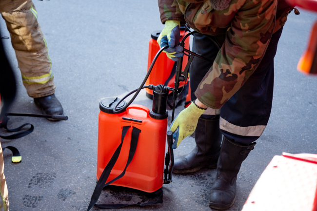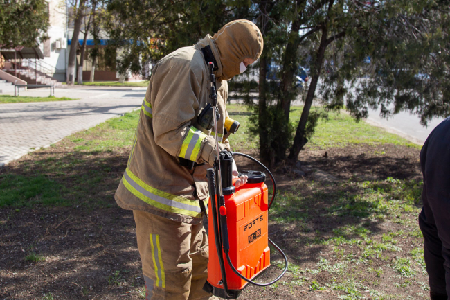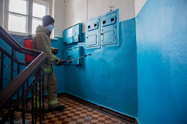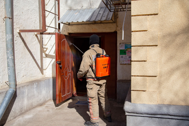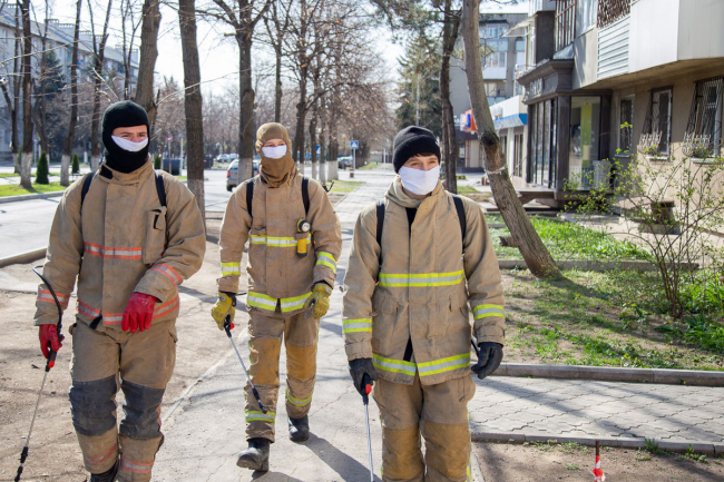 За сутки пожарные совместно с работниками коммунальных служб распылили в населённых пунктах Приднестровья более 2000 литров дезраствора. Обработано 720 подъездов, 130 остановок и 185 детских площадок. В дезинфекции принимают участие более 170 человек. Список улиц ежедневно меняется. Работы будут продолжаться до особого распоряжения Оперативного штаба, говорится в сообщении пресс-центра МВД ПМР.