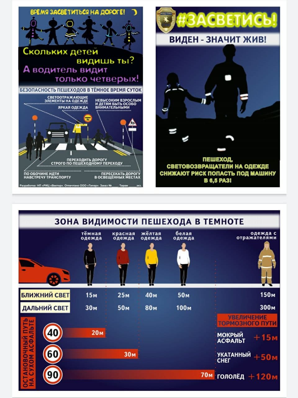 Пешеход в темноте и в тёмной одежде практически не виден водителю. Его заметно на расстоянии 25-40 метров. При скорости 90 км/ч 25 метров автомобиль проезжает за 1 секунду!