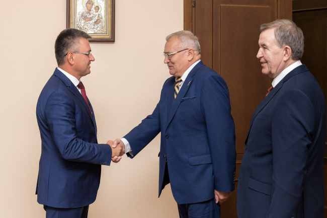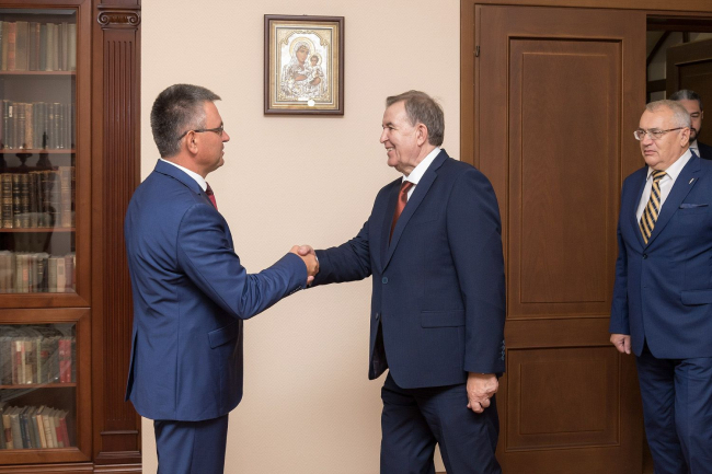 Тирасполь, 29 августа. /Новости Приднестровья/. Глава государства Вадим Красносельский встретился с президентом Федерального Союза адвокатов России Алексеем Галогановым и почётным адвокатом России Леонидом Манаковым, которые прибыли на празднование Дня Республики.