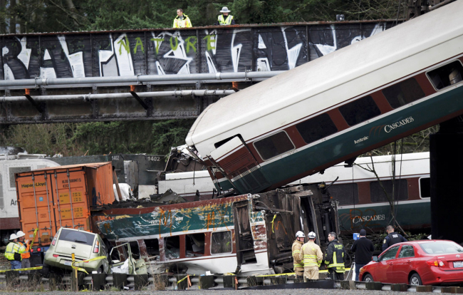 Состав, принадлежащий компании Amtrak, следовал по маршруту между городами Олимпия и Лейквуд в штате Вашингтон, недалеко от Сиэтла, и сошел с рельсов на железнодорожном мосту. Два вагона упали на шоссе I-5, соединяющее несколько крупных городов США, в том числе Сан-Диего, Лос-Анджелес и Сиэтл, повредив при этом не менее пяти машин.