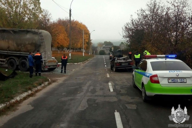 В Рыбнице легковой автомобиль врезался в цементовоз и перевернулся