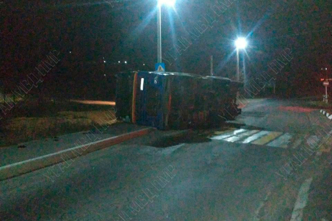 Водитель ДАФа на крутом повороте не справился с управлением большегруза