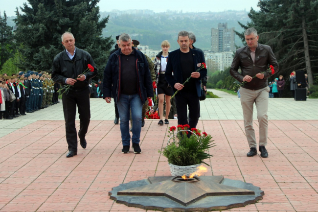 В память о тех, кто героически сражался на фронтах Великой Отечественной, трудился в тылу, восстанавливал страну в послевоенные годы, присутствующие застыли в Минуте молчания. Как дань безмерной благодарности защитникам Отечества к Вечному огню, мемориальным плитам легли живые цветы.