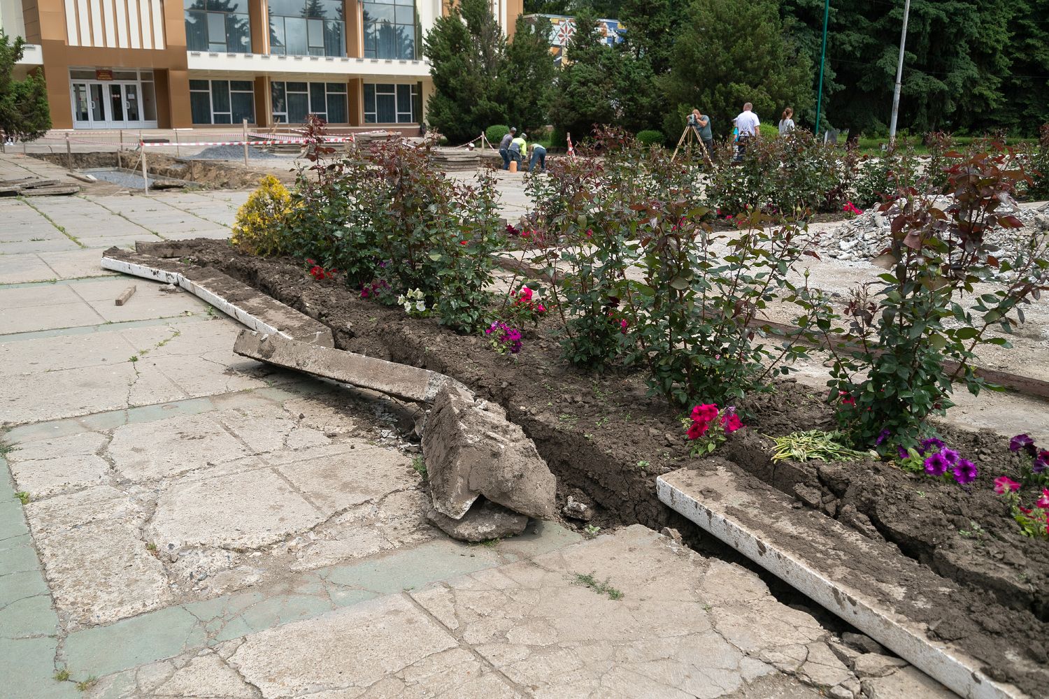 Глава государства, в частности, посетил центральную площадь города, которая не реконструировалась с 1977 года. Бетонное покрытие давно пришло в негодность, его поменяют на плиточное. Замощению подлежат 6753 квадратных метра. Уже начали демонтаж старого покрытия.