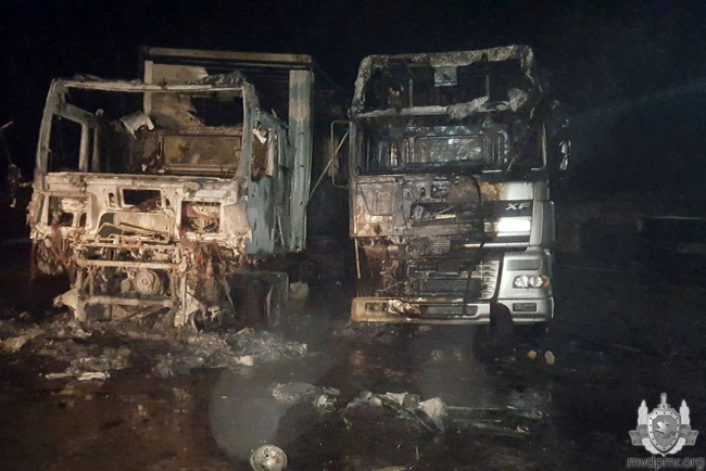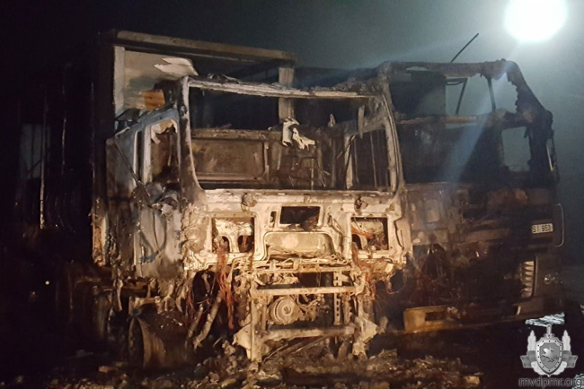 Припаркованный рядом автомобиль марки Mercedes удалось уберечь, отбуксировав в безопасное место. Оба сгоревших грузовика принадлежат транспортным компаниям города Кишинев (РМ).
