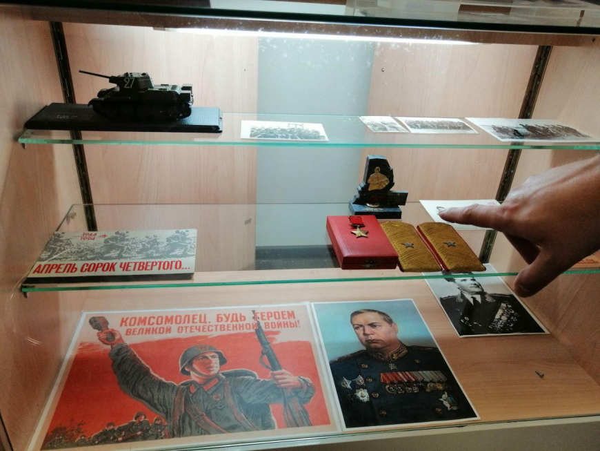 Большой блок экспонатов посвящён Великой Отечественной войне: есть карты боевых действий, звезда Героя, предоставленная одним из ветеранов, форма старшины пехоты 1944 года.