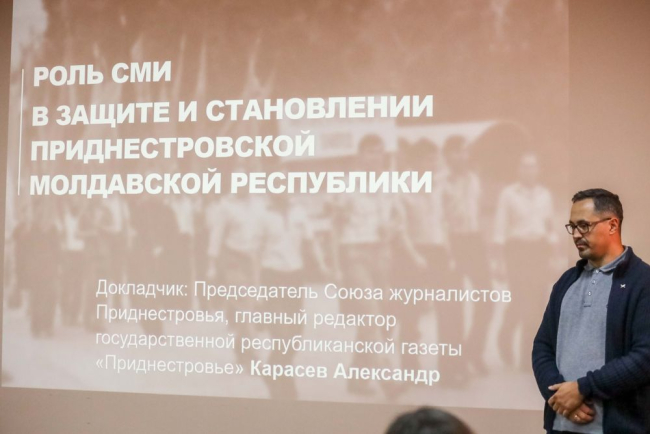 Тирасполь, 7 октября. /Новости Приднестровья/. В Школе молодого журналиста начался новый учебный год. На первом занятии перед слушателями выступили замминистра цифрового развития, связи и массовых коммуникаций Максим Кравец, директор ГУ «Приднестровская газета» Юрий Трифонов и председатель Союза журналистов Приднестровья Александр Карасев. Ребятам рассказали о зарождении и становлении СМИ Приднестровья.