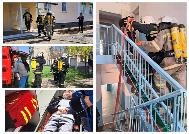 ​​​​​​​По легенде учений, возгорание произошло на втором этаже, где занимаются младшие классы