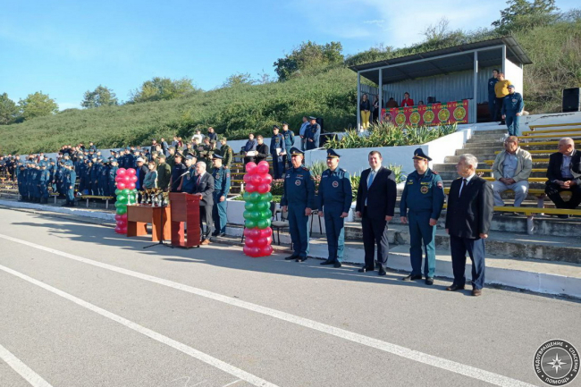 За состязаниями наблюдают вице-премьер Правительства ПМР Станислав Касап, министр внутренних дел Виталий Нягу, заместитель министра – начальник ГУпЧС Вадим Шмаленко, начальники территориальных подразделений ГУпЧС, а также глава Слободзейского района Василий Тищенко.