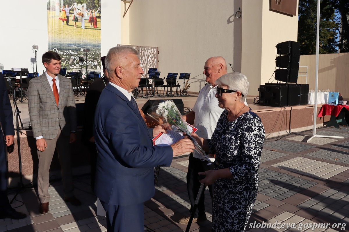 На сцене кинотеатра чествовали выдающихся жителей города и района, а также золотых юбиляров супружеской жизни. Также в этот день юным жителям города вручили паспорта ПМР.
