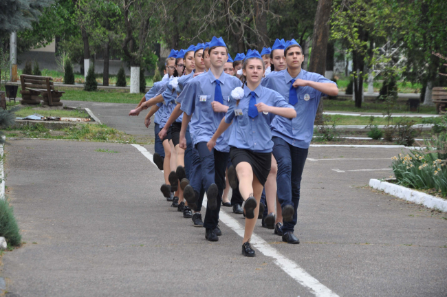 Затем каждый отряд продемонстрировал отточенность марша и громкость речевок. Членами жюри учитывалось всё: правильность доклада командира о готовности отряда к состязаниям, строевая выправка, содержание девиза и, конечно же, результаты выполненных заданий. Немаловажное значение придавалось внешнему виду участников (форменной одежде, экипировке).