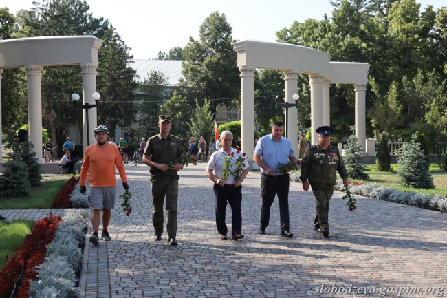 К памятникам погибшим защитникам Приднестровья, начальнику штаба Народного ополчения Александру Гусару, а также воинам-афганцам возложили цветы.