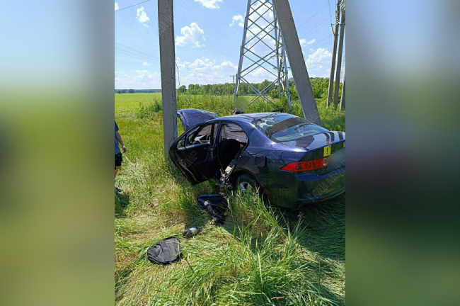 От удара «Хонда» выехала с проезжей части в поле, чудом не задев опоры линии электропередач.