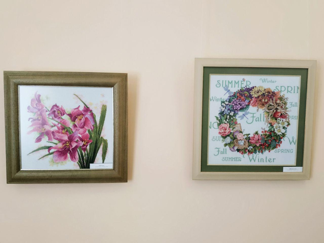 Ведущую роль в интересах Лилии Ляшенко сыграла безмерная любовь к цветам. Кроме выращивания орхидей, женщина передает красоту растений в своих вышитых картинах. Цветочных вышивок на представленной выставке большинство.