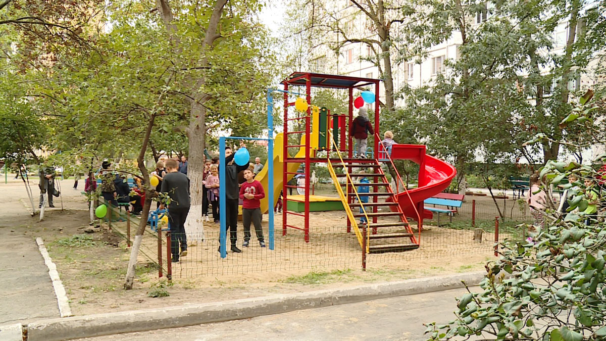 Яркие качели и турники теперь есть во дворе четырёх домов по улице Юности, 60/1, 60/2, 60/3 и 60/4
