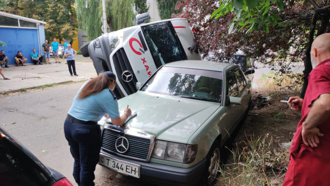 Легковушка столкнулась с микроавтобусом, который опрокинулся на две припаркованные машины