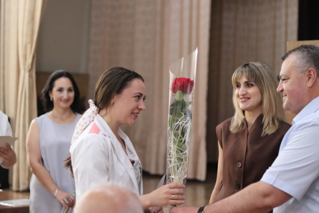 Коллектив центра поздравила министр здравоохранения Кристина Албул. Руководитель ведомства высоко оценила его труд и пожелала достойно выполнять свой профессиональный долг. Лучшим представителям учреждения были вручены государственные и ведомственные награды.