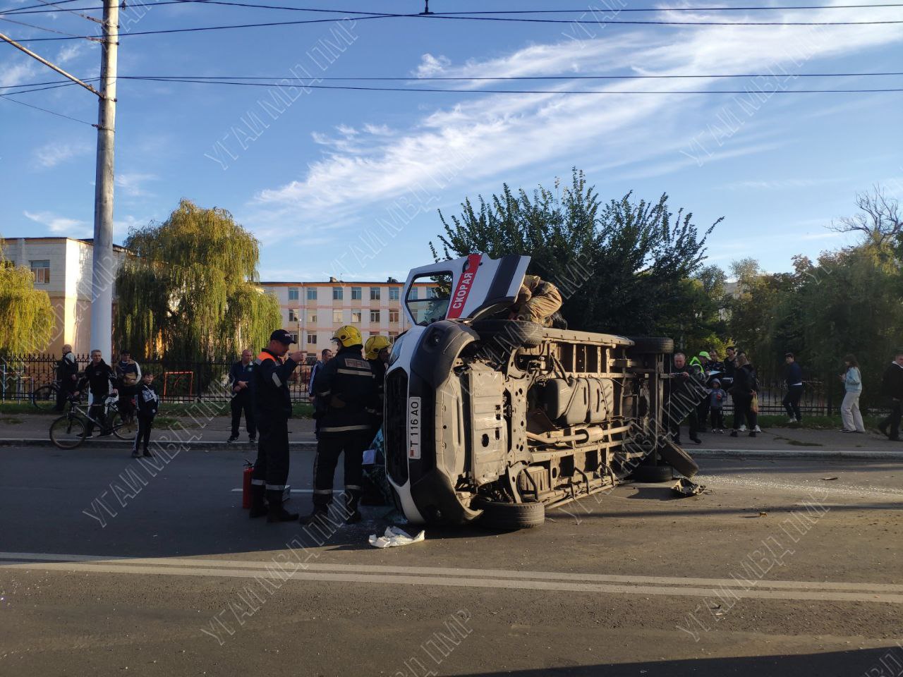 На место ДТП прибыли сотрудники ГАИ, врачи и спасатели. Сотрудники аварийно-спасательного подразделения обесточили скорую и оказали помощь в эвакуации автомобиля.