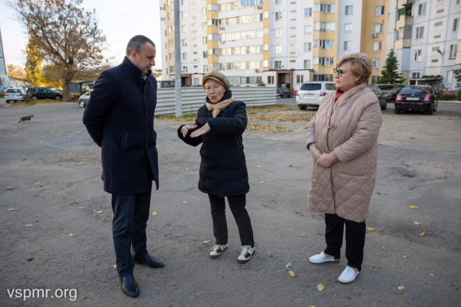 Причина жалоб жильцов – отсутствие ливневой канализации. Проинспектировать проблемный участок приехали вице-спикер и заместитель главы Тирасполя по ЖКХ Геннадий Горох. На встрече приняли решение установить ливнёвки.