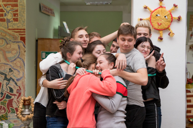 Первокурсники столичного техникума коммерции разделились на две команды: «Форсаж» и «Позитив». Ребята проверяли свою силу, скорость и меткость: перетягивали канат, кормили друг друга блинами на время, а также бросали шары в корзину.