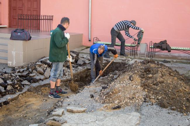 Сотрудники ЖЭУК сегодня приступили к работе: сейчас разрывают грунт, после чего заменят примерно 30 метров стальной трубы диаметром 180 мм.