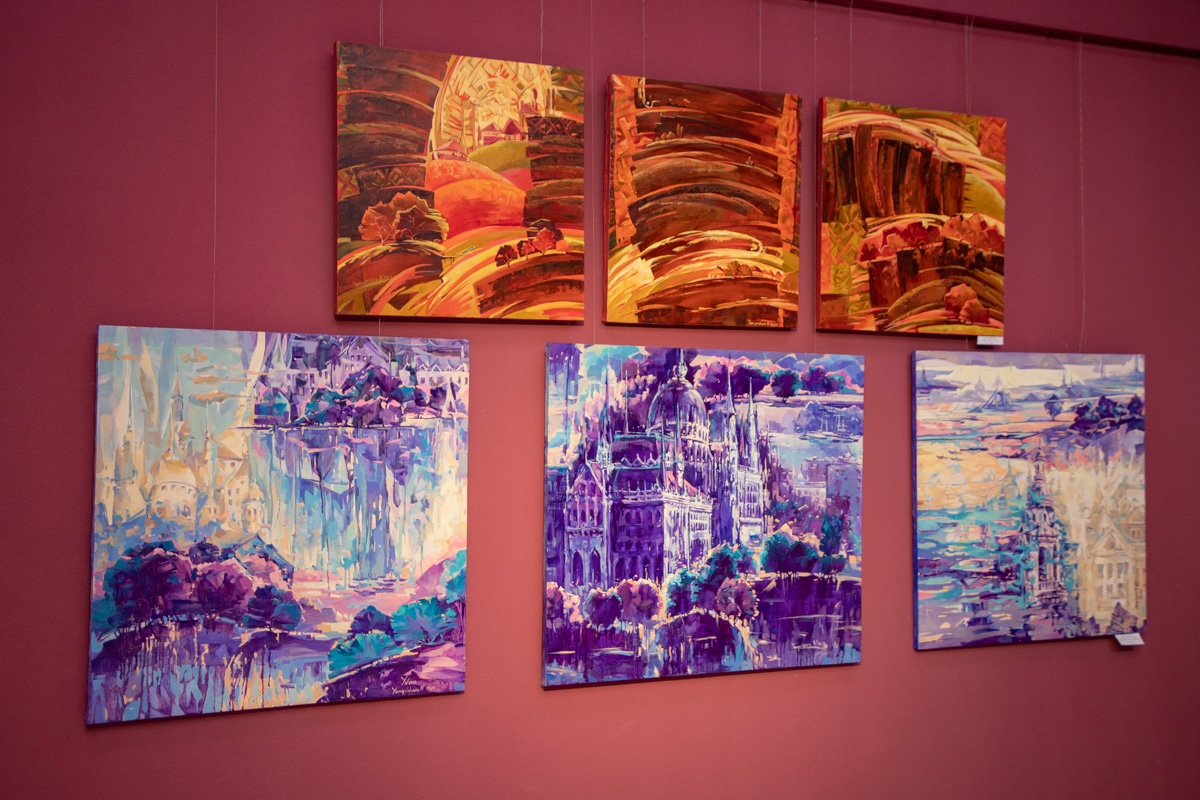 Экспозиция также интересна серией триптихов. Невозможно оторвать взгляд от «Ирисов», «Воздушных замков Будапешта», «Сумерек» и других.