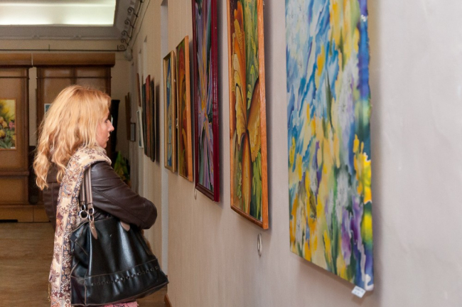 Тирасполь, 15 апреля. /ИА «Новости Приднестровья»/. Картинная галерея Тираспольского объединённого музея обновила свою экспозицию: сегодня на её стенах появились работы одной из ведущих приднестровских художниц, пишущих в стиле «батик», – Маргариты Хилинской. 70 работ, отобранных из более чем 1,5-тысячной коллекции, объединили в «Весенних красок настроение». Впрочем, настроение с полным правом можно было бы назвать и летним – настолько ярки и красочны картины, одежда, женские платки и мужские галстуки ручной работы.