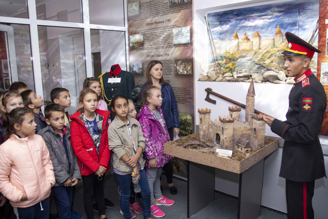 Тирасполь, 27 сентября. /Новости Приднестровья/. Экскурсию по Суворовскому училищу для учащихся младших классов средних школ провели воспитанники учебного заведения. Школьникам рассказали историю создания училища и поведали об исторических победах русского полководца Александра Суворова. Им также показали места отдыха курсантов, столовую и обучающие классы.