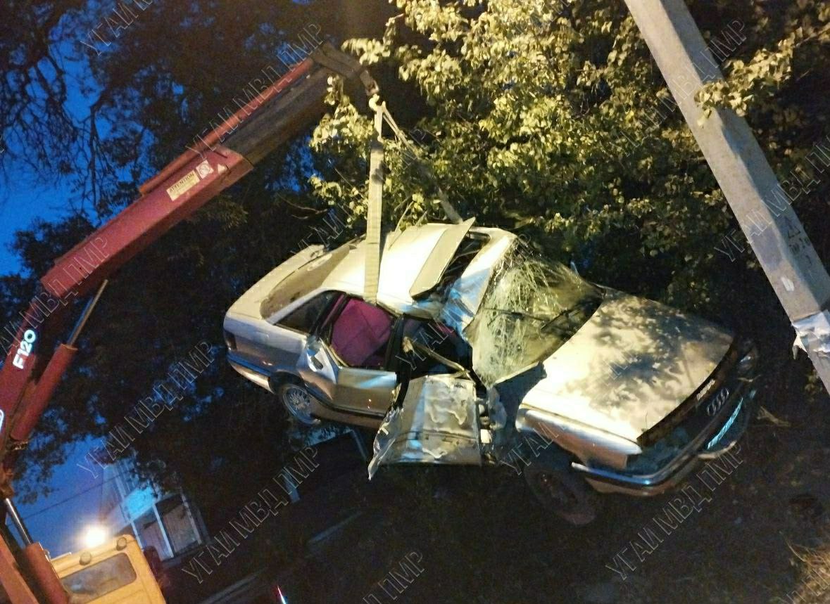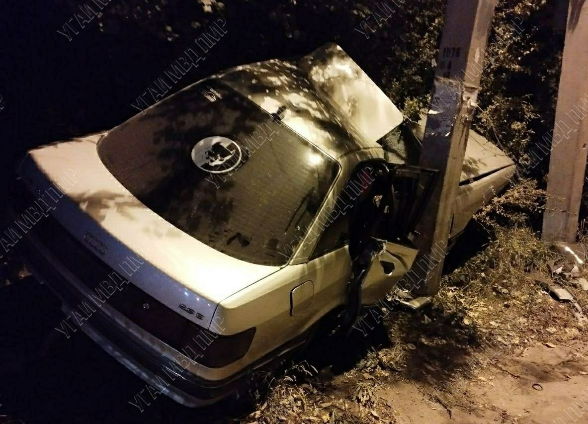 В Тирасполе Audi врезался в столб, пострадал пассажир