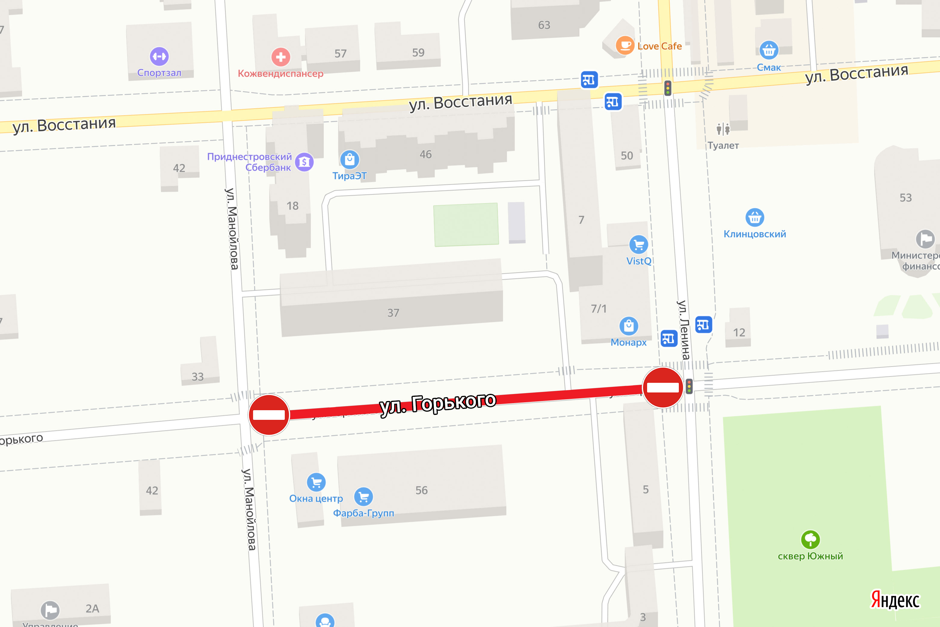 Тирасполь, 24 августа. /Новости Приднестровья/. В Тирасполе с 24 августа по 1 сентября по улице Горького на участке от ул. Манойлова до ул. Ленина будет перекрыто движение автотранспорта. Такое ограничение связано с ремонтом водопровода.