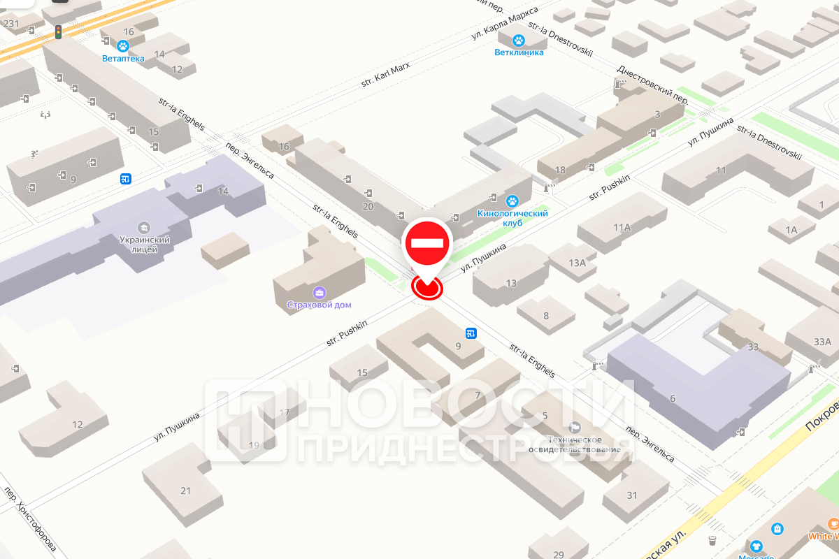 Тирасполь, 1 апреля. /Новости Приднестровья/. В Тирасполе до 12 апреля полностью перекрыта дорога по ул. Пушкина на пересечении с переулком Энгельса.