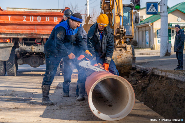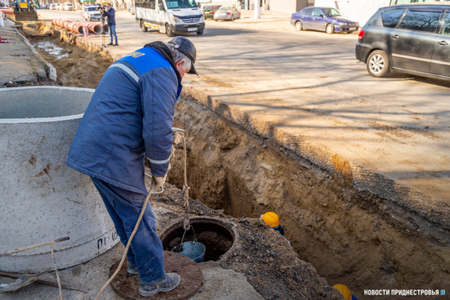 Тирасполь, 25 февраля. /Новости Приднестровья/. В Тирасполе меняют большой участок канализационных и водопроводных сетей. Это отрезок по улице Карла Либкнехта — от пересечения с переулком Энгельса до улицы Крупской. Работают одновременно 3 бригады. Трубы здесь прокладывали в 1970-х гг., срок службы давно прошёл. Аварии случались столь часто, что бригадам водоканала приходилось выезжать на вызовы по несколько раз в месяц.