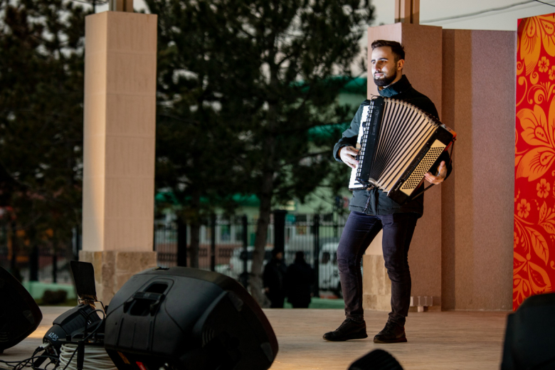 Народные мотивы в честь праздника исполнили также инструменталисты ансамбля. Хора, хайдучаска и батута – эти молдавские танцы прозвучали в исполнении Сергея Карая (скрипка), Олега Нинику (труба) и Григория Стойко (аккордеон).