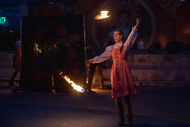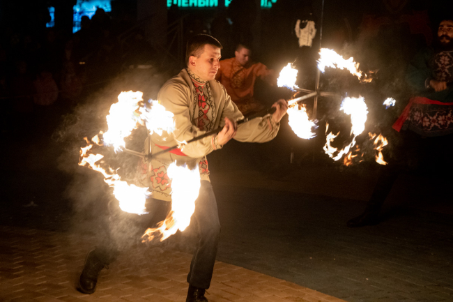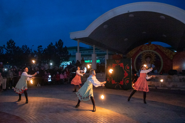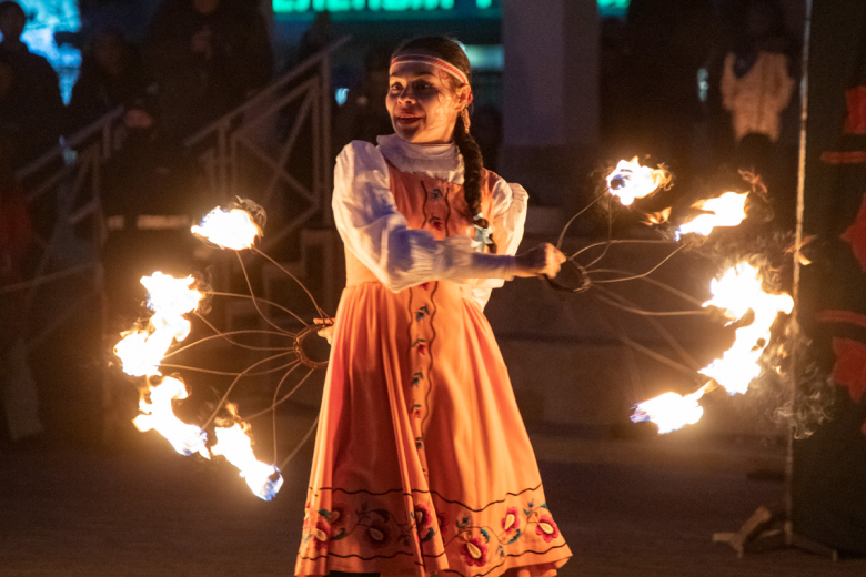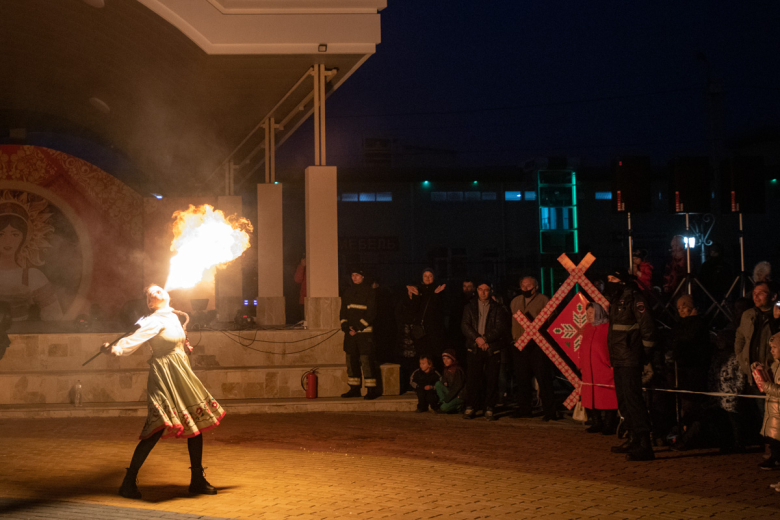 В Тирасполе в этом году чучело Масленицы не сжигали. Но без пламени на празднике не обошлось. Жителям и гостям столицы студия огня и света «Om Ram» подарила файер-шоу.