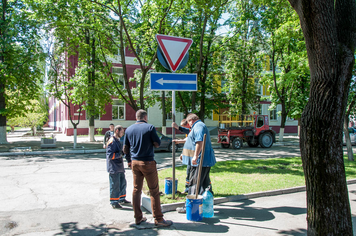 15 Май, 2017, 12:43Тирасполь, 15 мая. /Новости Приднестровья/. В столице идёт работа по обновлению дорожных знаков. Так на улице Карла Маркса устанавливают новые светоотражающие знаки «Уступи дорогу», «Выезд на одностороннее движение», «Остановка запрещена». Одновременно некоторые знаки убирают, а некоторые — устанавливают. Как рассказал директор ТДРСУ Геннадий Горох, по указанию главы города, специальная комиссия с участием представителей предприятия, госадминистрации и ГАИ объехала город, чтобы оценить правомерность установки тех или иных знаков.