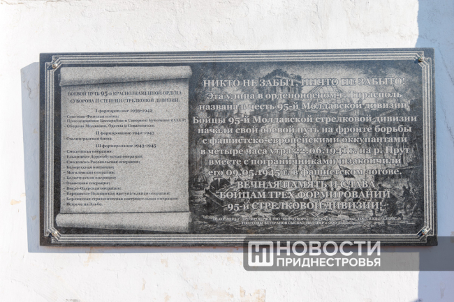 Тирасполь, 16 января. /Новости Приднестровья/. Сегодня в Тирасполе торжественно открыли памятно-информационную табличку в честь бойцов 95-й Молдавской стрелковой дивизии. Они прошли всю Великую Отечественную войну, а Победу встретили в мае 1945 года в Берлине.