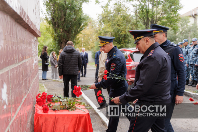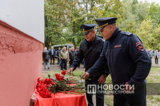 На открытии присутствовали глава МВД ПМР Виталий Нягу, а также сослуживцы, ученики и близкие Георгия Чавдаря.