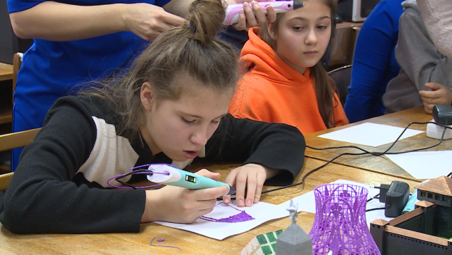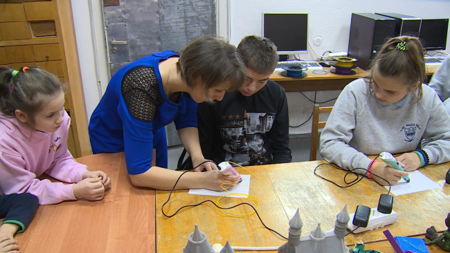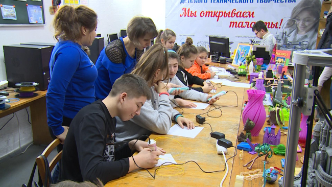 Детям показали выставку технического творчества, среди которого были уникальные работы других детей, выполненные на 3D-принтерах. После чего у каждого ребёнка была возможность создать что-либо по собственному эскизу с помощью 3D-ручки. Готовые изделия ребята забрали с собой на память.
