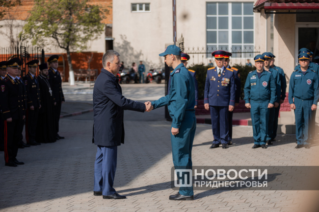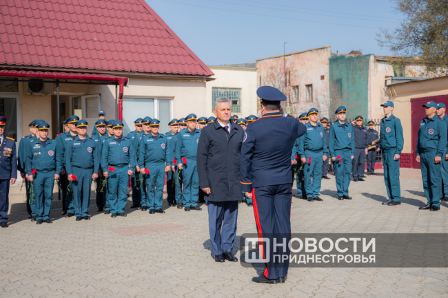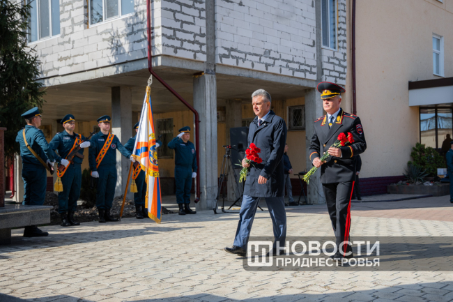 Тирасполь, 17 апреля. /Новости Приднестровья/. В Тирасполе прошло торжественное собрание, посвящённое 107-й годовщине со дня образования пожарной охраны. В мероприятии приняли участие Президент ПМР Вадим Красносельский и министр внутренних дел ПМР Виталий Нягу.