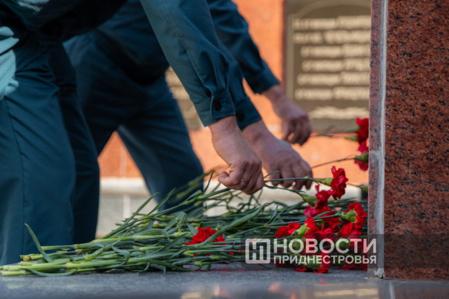 Мероприятие традиционно началось с возложения цветов к памятнику погибшим при исполнении служебного долга сотрудникам внутренних дел.