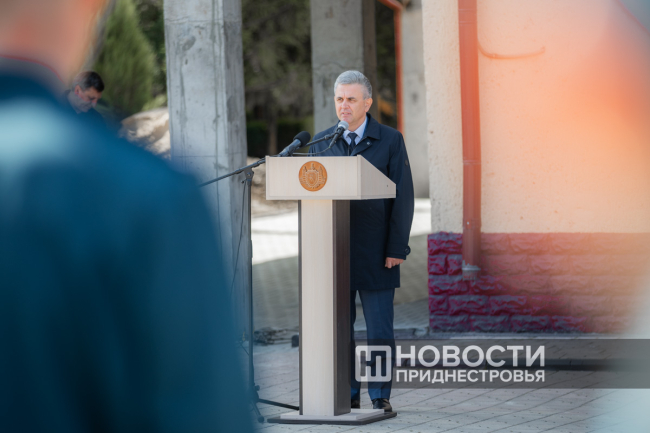Новый автопарк ГУпЧС МВД ПМР осмотрели Вадим Красносельский и Виталий Нягу.