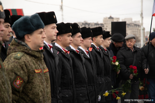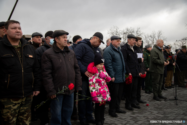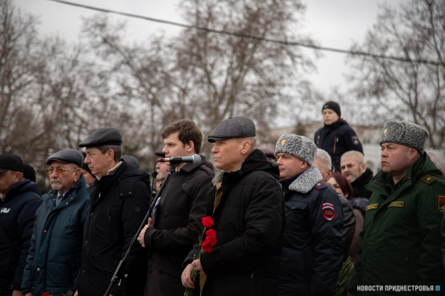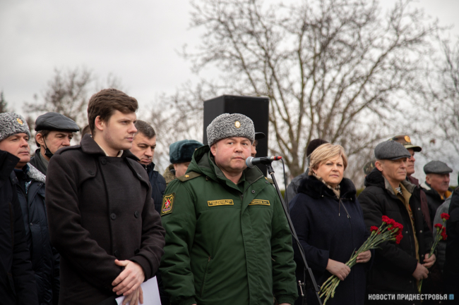 «30 лет назад на долю нашего народа выпала нелёгкая ноша. Националисты Республики Молдова развязали войну против собственного народа. В результате многие несогласные с их политикой взяли в руки оружие и совершили подвиг. 3 марта в Кочиерах началась активная фаза боевых действий. Там, выполняя свой воинский долг, погибли четверо наших товарищей из 1-го батальона республиканской гвардии», - подчеркнул, выступая перед собравшимися, министр обороны генерал-майор Олег Обручков.
