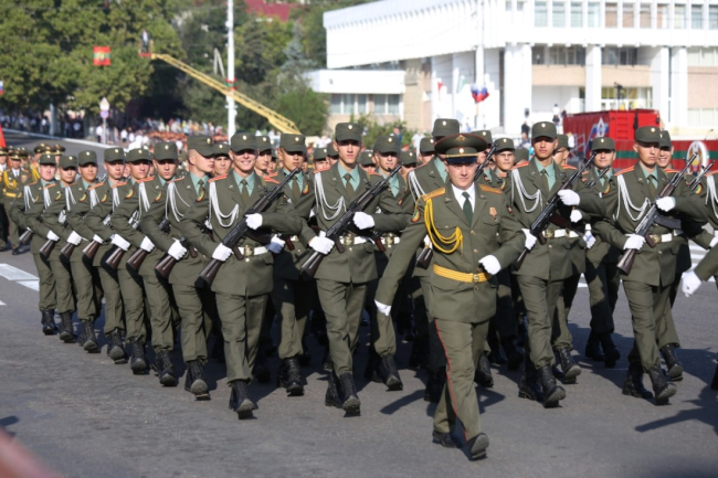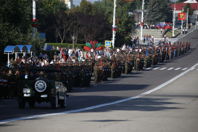 Парад принимает главнокомандующий Вооруженными силами, Президент ПМР Вадим Красносельский. По главной площади Тирасполя пройдут 19 парадных расчетов. Среди них — подразделения Министерства обороны, Министерства внутренних дел, Министерства государственной безопасности, Следственного комитета, Черноморского казачьего войска. Музыкальное сопровождение обеспечит военный оркестр Главного штаба Вооруженных сил.