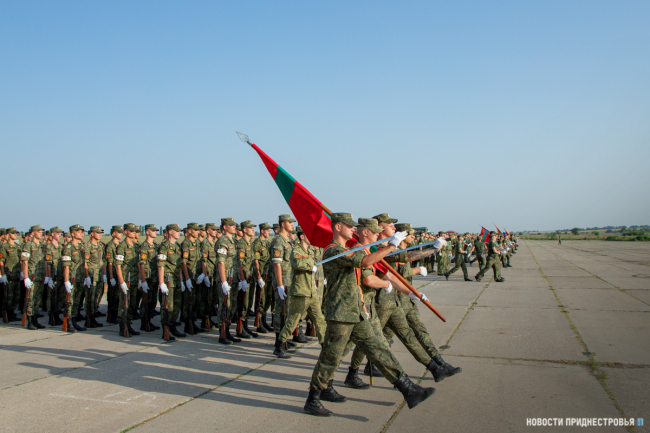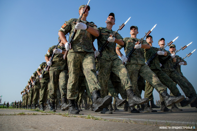 2 сентября в Тирасполе на площадь им. А. В. Суворова выйдут 18 пеших парадных расчётов от различных силовых ведомств республики. Это более 1300 участников. Среди них в основном молодые люди, которые пополнили ряды армии в мае-июне этого года. Одна из коробок будет женской, в её составе - военнослужащие Министерства обороны ПМР.